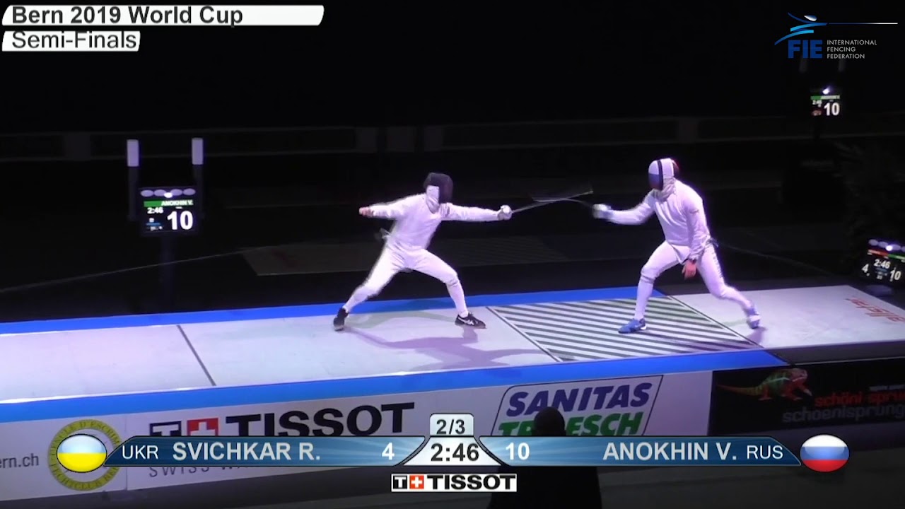 Highlights of the semi-final matches at the 2019 Berne World Cup featuring Vadim Anokhin (RUS) versus Roman Svichkar (UKR) and Alexandre Bardenet (FRA) versus Igor Reizlin (UKR). Images courtesy of @Fencing Vision